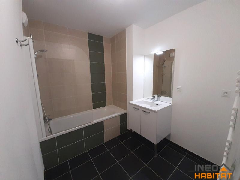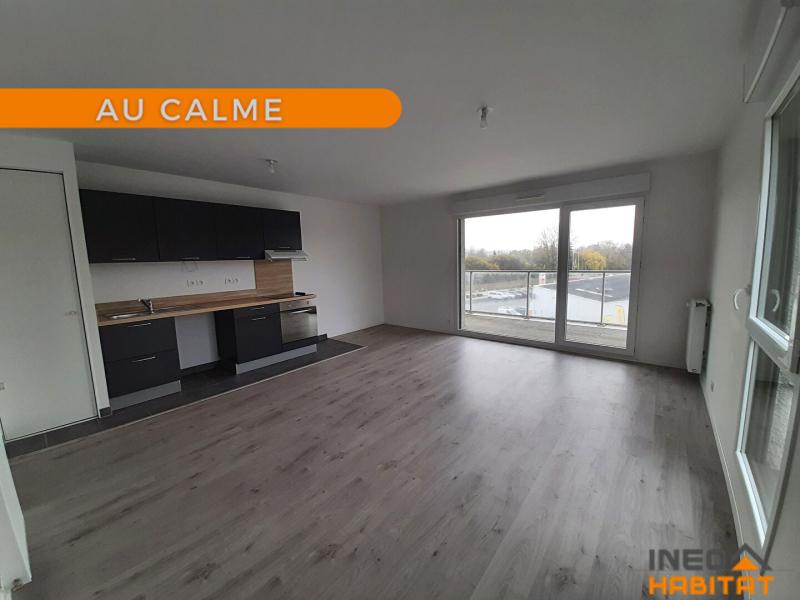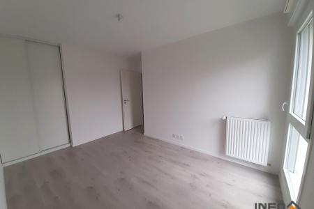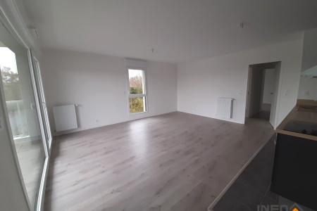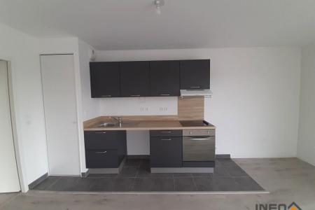 Une entrée avec placard, WC, une salle de bains avec branchement LL, deux chambres dont une avec placard, une cuisine aménagée et équipée (hotte, plaques, four) ouverte sur le séjour avec balcon exposé Sud, un cellier sur le palier.