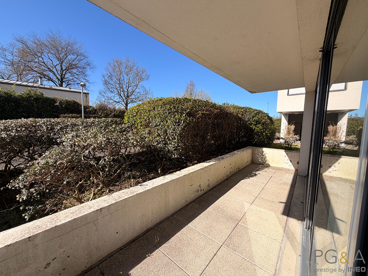 BRUZ - Dans une résidence de 2007, appartement T3 au RDC de 65.68m². Cet appartement comprend une entrée avec placards, un séjour avec cuisine semi ouverte, deux chambres avec placard et salle de bain attenante, WC.