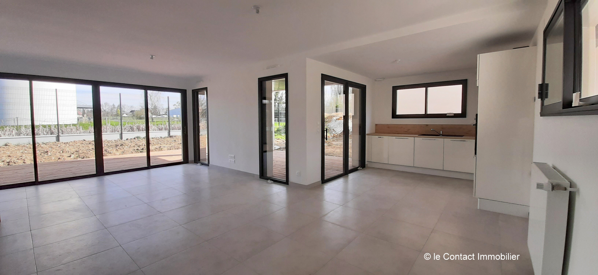 Bruz, au calme en impasse, maison de 117 m² de 2022 comprenant au rez de chaussée salon-séjour-cuisine de 46 m² (hotte, plaques induction, four, lave vaisselle), une suite parentale avec salle d'eau attenante, buanderie, WC.