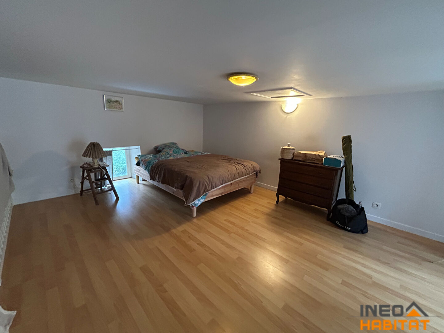 A l'étage, une grande mezzanine desservant un coin salon et un coin nuit avec placard.