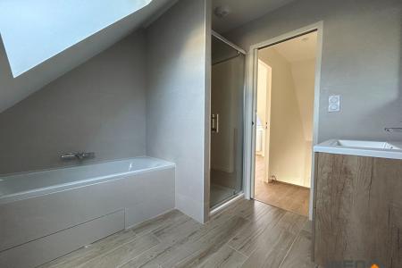 A l'étage on retrouve 3 chambres dont 2 avec placard, une salle de bains (baignoire + douche) ainsi qu'un WC séparé.