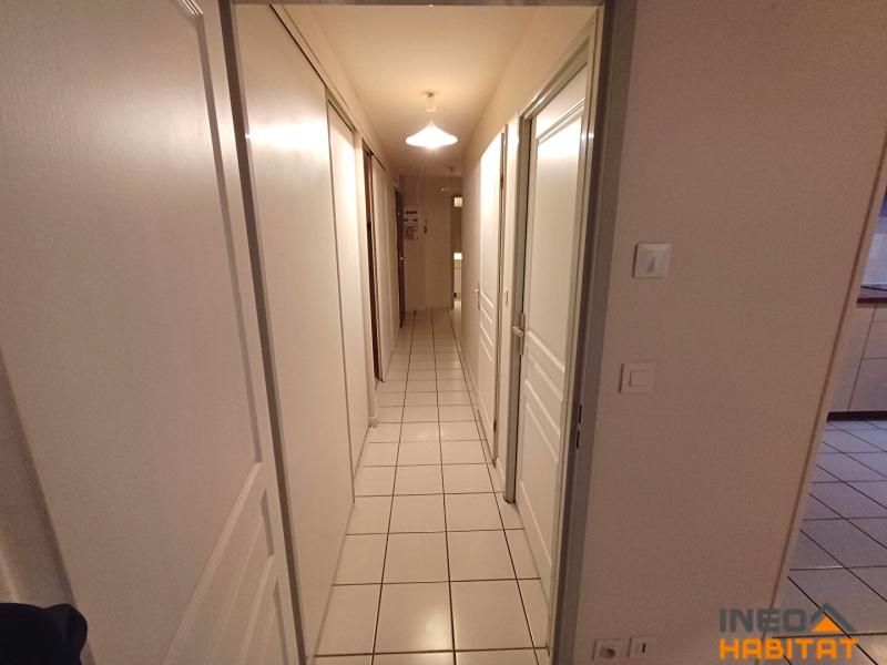 une entrée avec placards, une cuisine aménagée et équipée (hotte, plaques, four) ouverte sur le séjour donnant accès à une terrasse avec jardin clos, deux chambres dont une avec placard, une salle de bains, WC.
