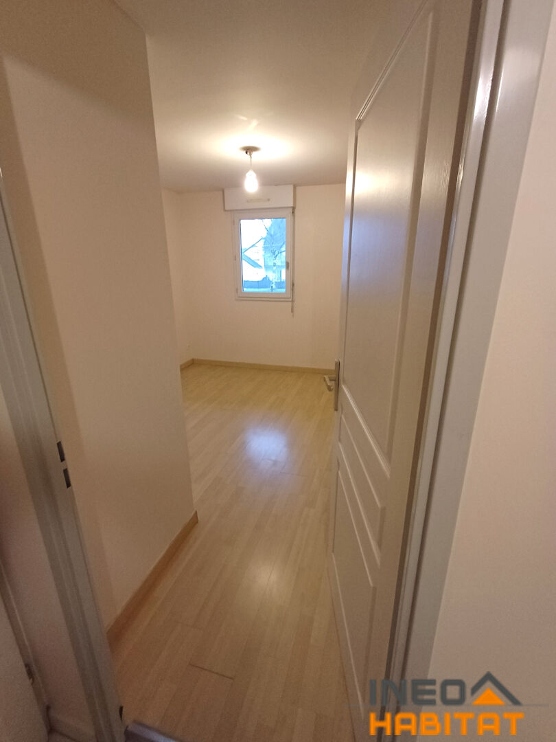 une entrée avec placards, une cuisine aménagée et équipée (hotte, plaques, four) ouverte sur le séjour donnant accès à une terrasse avec jardin clos, deux chambres dont une avec placard, une salle de bains, WC.