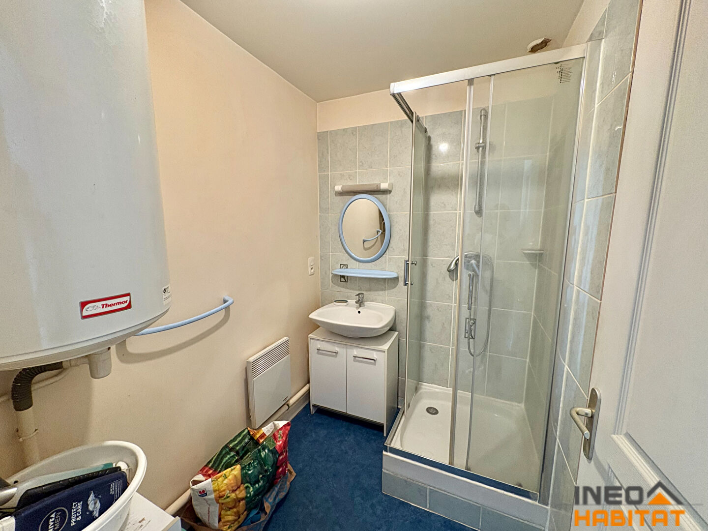Appartement T2 comprenant un salon/séjour lumineux avec grand placard, une cuisine aménagée, une chambre, une salle de bain et un WC séparé. L'appartement dispose également d'une place de parking et d'un garage fermé.