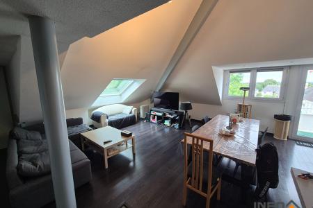 A louer, appartement T2 en duplex entièrement meublé, situé à La Mézière, à proximité du centre-bourg. Il comprend une entrée avec placard, un séjour lumineux, une cuisine aménagée et équipée, une chambre, une mezzanine, une salle d'eau ainsi que des WC séparés. Le logement dispose également d'un balcon, d'une place de parking et d'un garage.