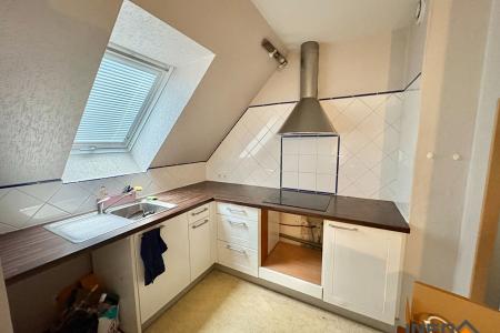 A louer, un appartement T2 de 40 m² comprenant une entrée avec placard, un séjour-salon lumineux donnant sur un balcon, une cuisine aménagée, une chambre avec placard, ainsi qu'une salle de bains avec WC. Le logement dispose également d'un garage.
