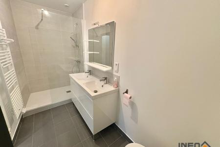 Au rez-de-chaussée, le logement comprend une entrée, un WC avec lave-mains, deux grands placards ainsi qu'un séjour avec cuisine aménagée et équipée (plaque induction, four, hotte, lave-vaisselle et meubles de rangement).