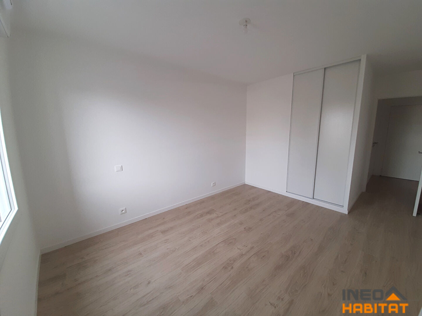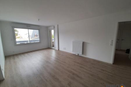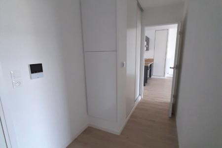 Une entrée avec placard, une cuisine aménagée et équipée (hotte, plaques, four) ouverte sur le séjour exposé Ouest avec accès balcon, deux chambres avec placard, une salle d'eau, WC.