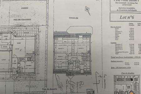Au calme, maison des années 2000 renovée de type 6 de 122.16m² composée d'une entrée avec placard, d'un WC, d'un salon-séjour avec cuisine ouverte aménagée et équipée (meubles hauts, bas, plan de travail, plaques gaz, hotte, four), une arrière-cuisine, une chambre sur parquet avec placard et salle d'eau privative. A l'étage: Une mezzanine, une salle de bains, un WC, 3 chambres sur parquet dont 2 avec placards. Garage, terrain clos et arboré. Chauffage gaz.