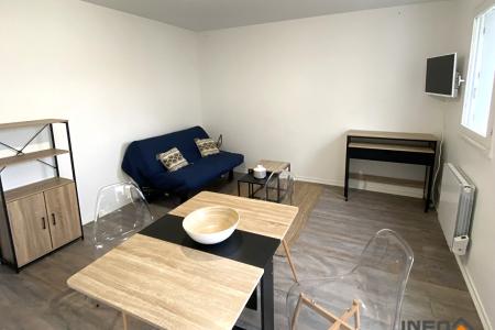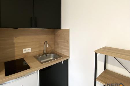 Studio meublé de 22.62 m² comprenant une entrée avec placard, une pièce de vie avec kitchenette aménagée et équipée (frigo, plaque de cuisson) et une salle d'eau avec WC. En annexe, un balcon.