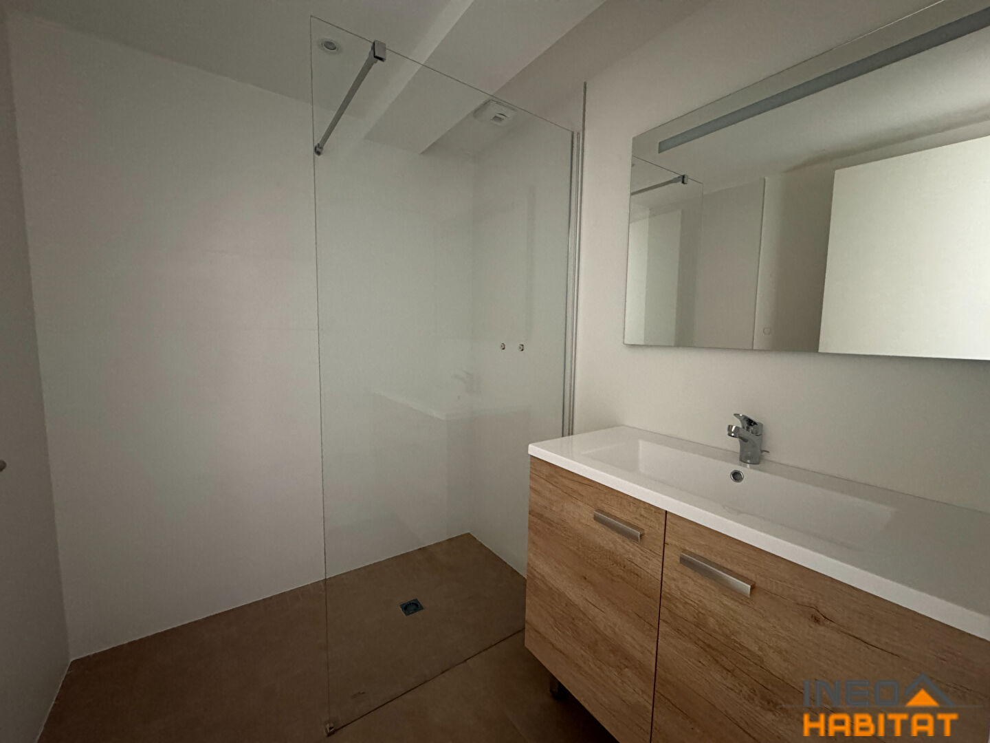 Bel appartement de type 2 nouvellement rénové comprenant une pièce de vie, une cuisine ouverte aménagée et équipée (four, plaques de cuisson, hotte et réfrigérateur), un dégagement desservant une chambre, une salle d'eau et WC séparés. En annexe, une terrasse privative exposée Sud.