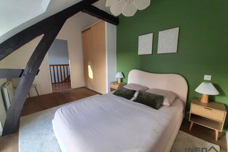 Dans un cadre privilégié, calme et verdoyant, à seulement 700 m des commerces et transports et à 10 min de Rennes, appartement T3 en duplex de 66,19 m², entièrement meublé, rénové et prêt à vivre, avec belles prestations.