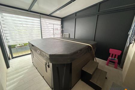A LOUER MAISON T5 comprenant une entrée avec un placard, une cuisine aménagée et équipée (four, plaque, hotte, frigo) ouverte sur le séjour, un WC, une chambre avec placard, une salle d'eau privative ainsi qu'un accès à la véranda comprenant un jacuzzi.
