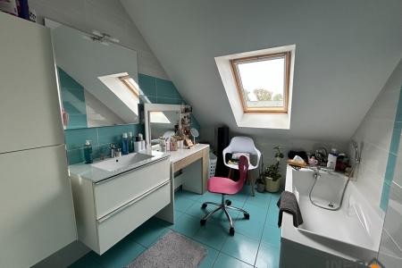 A l'étage, on retrouve 3 chambres avec placard , une salle de bain avec baignoire et douche et un WC séparé.