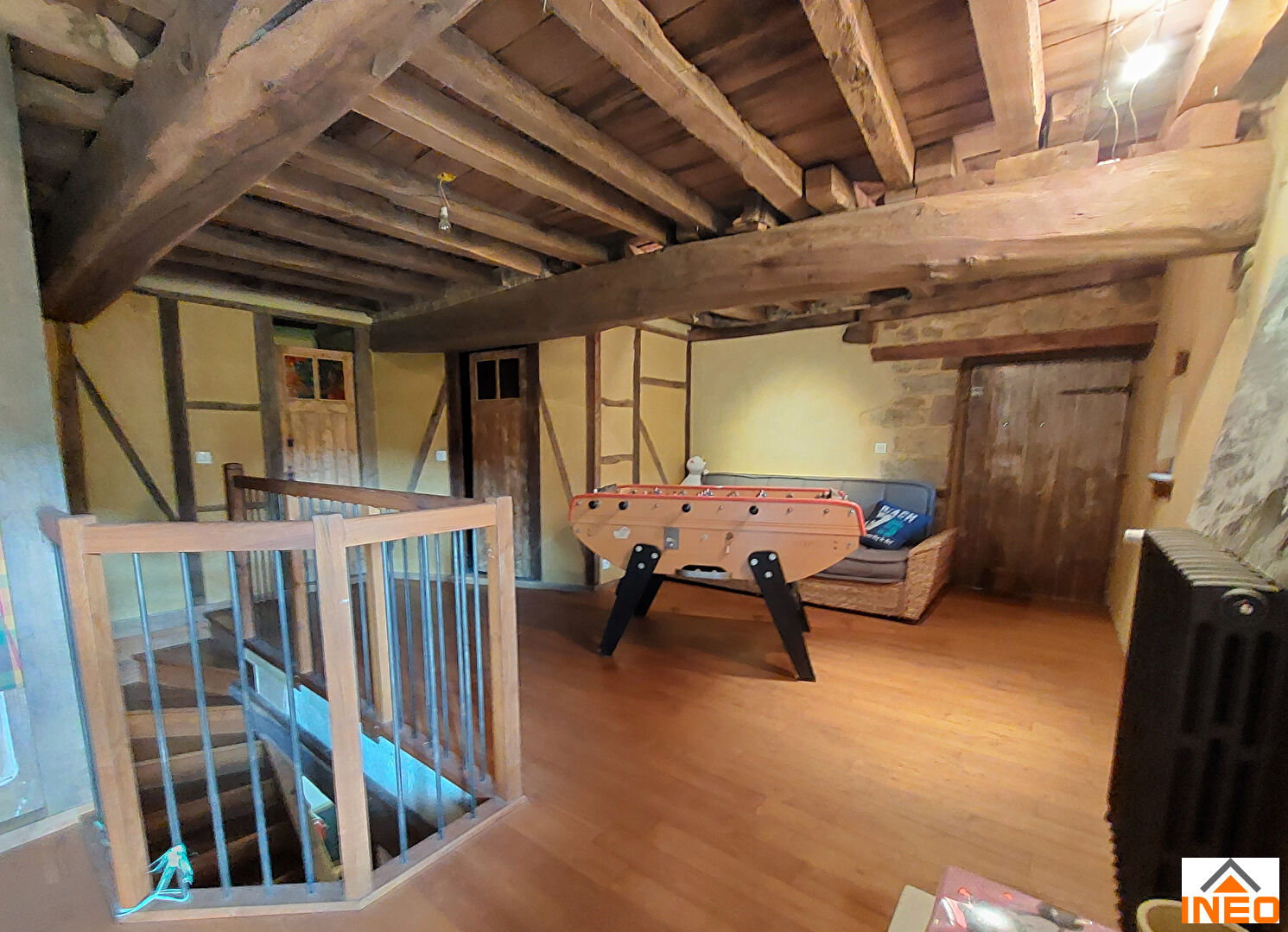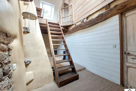 A l'étage : une grande mezzanine, deux chambres (pose de sol en cours sur une des chambres), une salle d'eau, WC.