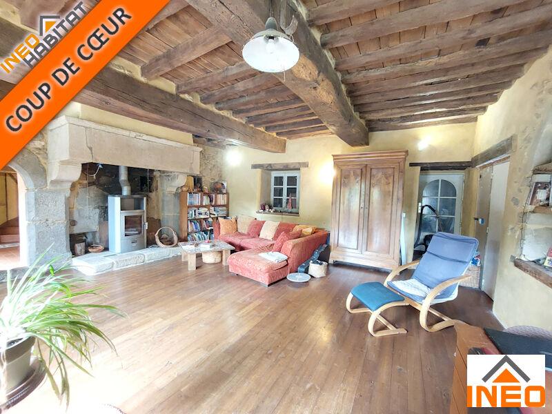 Coup de coeur assuré pour cette superbe longère de caractère en pierre ayant fait l'objet d'une rénovation de qualité avec des matériaux naturels respectant le bâti ancien (enduits à la chaux, parquets massifs, tomette...) et comprenant :