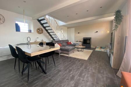 MAISON T5 en campagne de BEDEE, construction pierre entièrement rénovée d'une superficie de 131m² comprenant un salon/séjour avec poêle à granulés, une cuisine ouverte aménagée et équipée (four, plaque, hotte, lave-vaisselle et micro-onde encastré) un espace desservant un second salon pouvant être aménagé en chambre, donnant sur terrasse. Une salle de bains avec WC séparé et une buanderie/arrière cuisine.