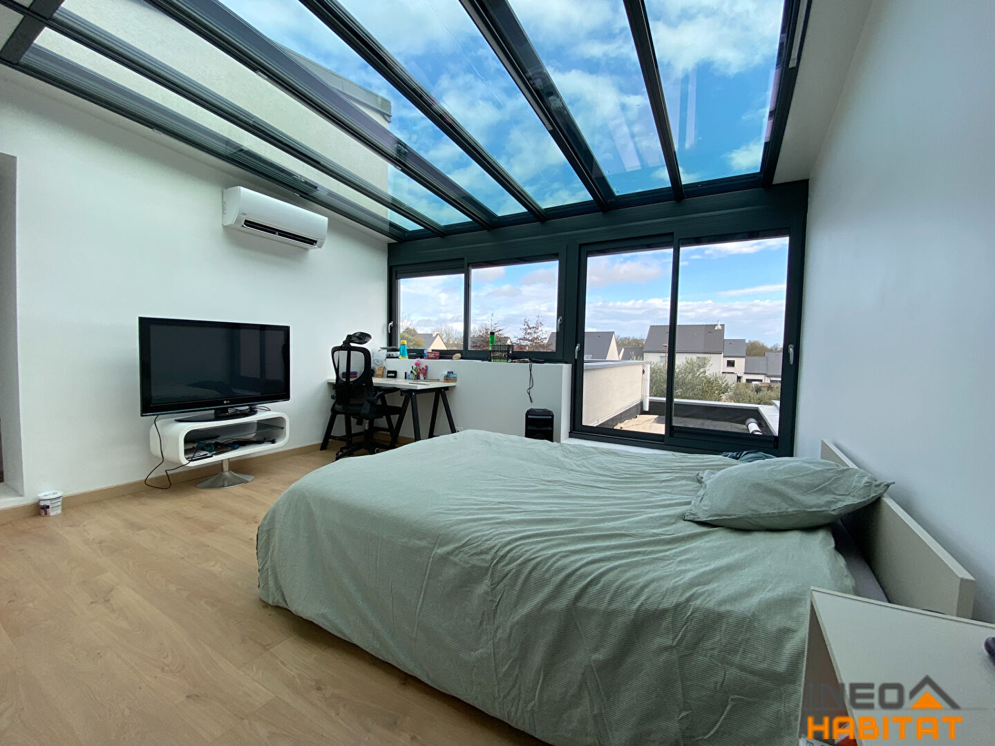 une seconde suite parentale de 27 m², entièrement vitrée, pouvant également accueillir un bureau, une salle de sport ou un espace selon vos envies.