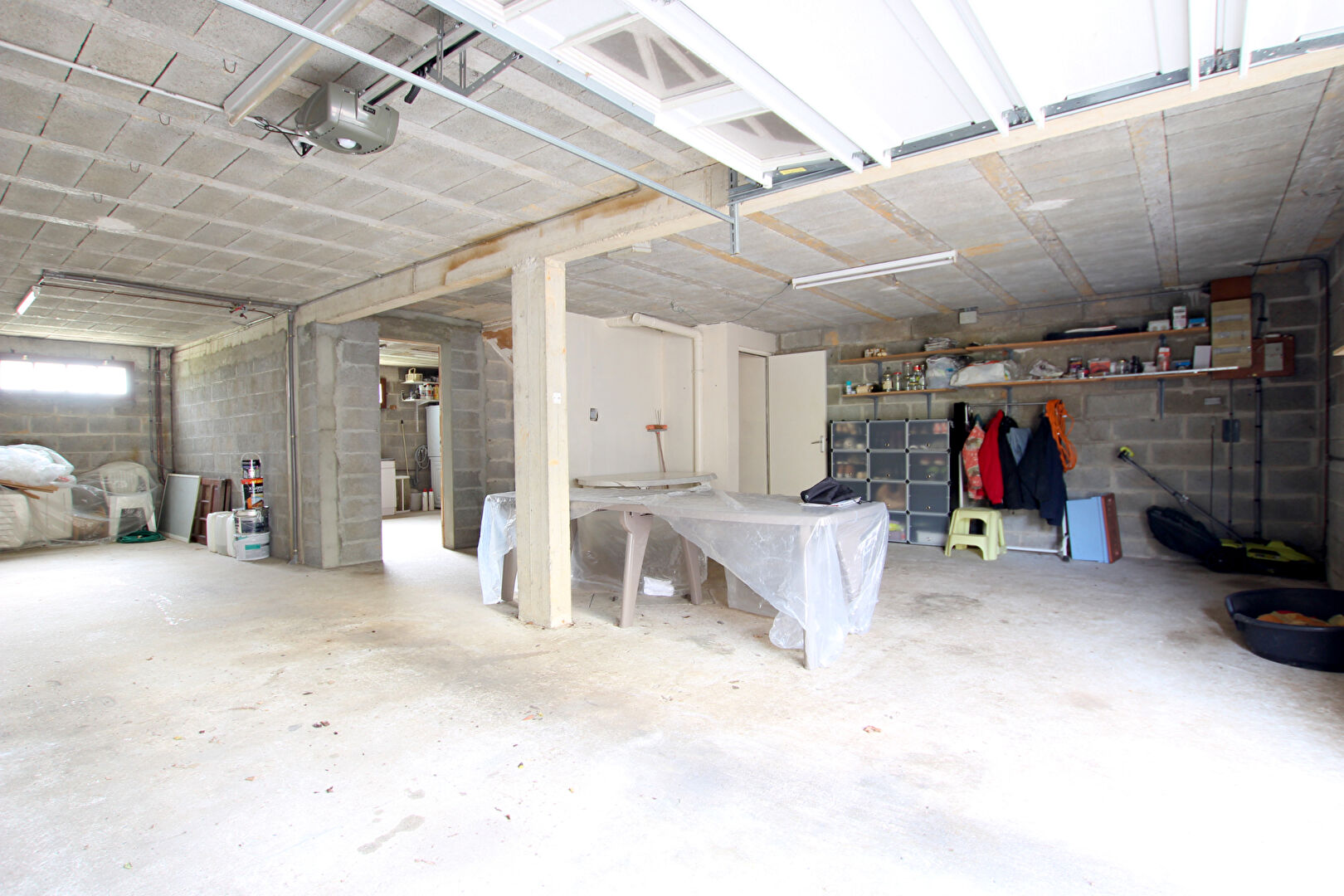 Le sous-sol propose plusieurs espaces fonctionnels : une buanderie, un espace de stockage et un garage.