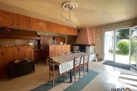 La maison construite dans les années 80 s'étend sur 210m² habitable et comprend une entrée, cuisine avec une cheminée, un WC.