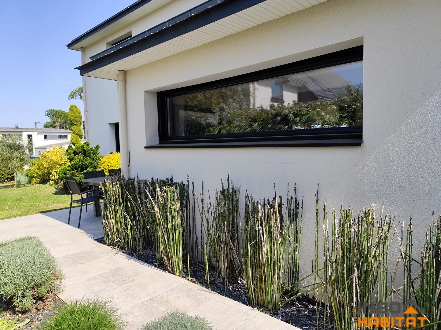Le tout sur un terrain paysagé de 750 m² environ, aménagé par un professionnel pour une parfaite harmonisation et intimité.