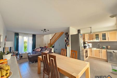 A Gévezé, dans un secteur calme et recherché, cette maison familiale de 2010 offre un cadre de vie idéal pour ceux qui souhaitent allier confort moderne, luminosité et proximité des commodités. Mitoyenne uniquement par le garage, elle développe 104 m² habitables sur une parcelle de 283 m², et propose un agencement aussi pratique qu'agréable à vivre : Entrée avec un rangements sous escalier, un salon-séjour spacieux de plus de 30 m² exposé plein Sud, une cuisine aménagée et équipée ouverte sur la pièce de vie, une buanderie, un WC avec lave-mains, ainsi qu'un accès direct au garage.