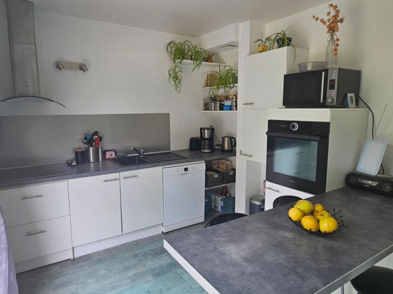 Accueil indépendant et spacieux donnant sur un salon séjour avec poêle à bois, une cuisine aménagée et équipée avec l'accès en Terrasse, 1 chambre dont salle de bains, WC.