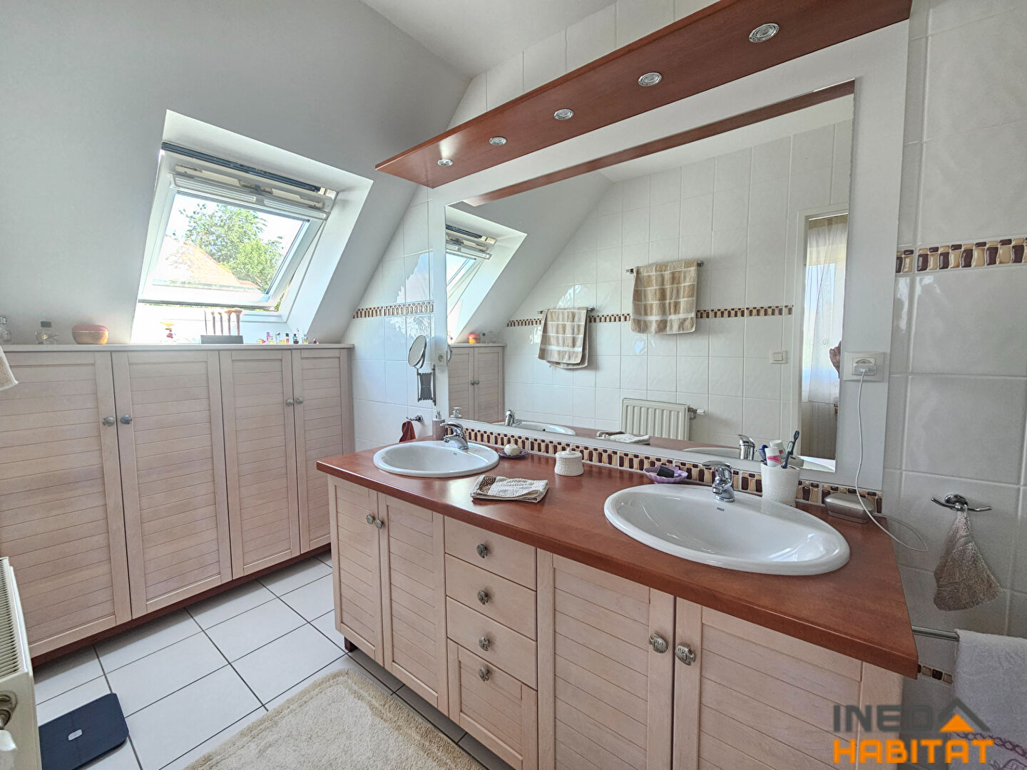 A l'étage, une mezzanine distribue quatre chambres, dont une magnifique suite parentale de 30 m² avec dressing et salle d'eau privative, une salle de bains, un second WC et des rangements.