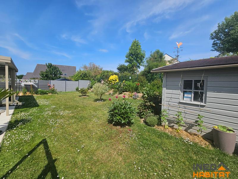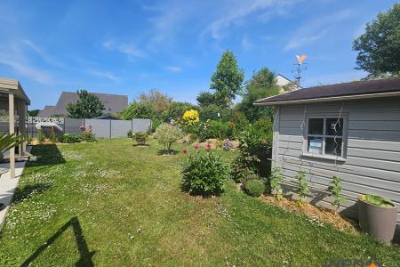 La maison est implantée sur un terrain clos et paysager de 633 m², sans vis-à-vis, avec terrasse, abri de jardin, carport, et garage attenant.