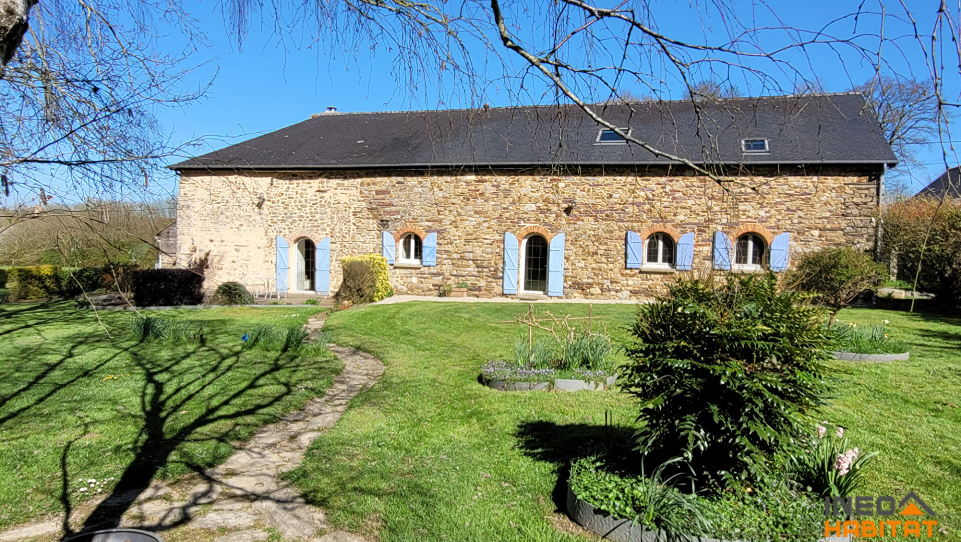 GUIGNEN - Dans un petit hameau au calme, belle longère en pierre rénovée récemment, située au coeur d'un parc de près de 5000m² qui longe un étang. La bâtisse de 196m² comprend: entrée avec placards, 2 chambres et salle de bains, salon, cuisine aménagée et équipée DAGIER. les pièces de vie ouvrent sur une terrasse orientée à l'ouest qui permet de profiter jusqu'au dernier rayon de soleil. A l'étage: une mezzanine /bureau, deux chambres, dressing, salle d'eau.