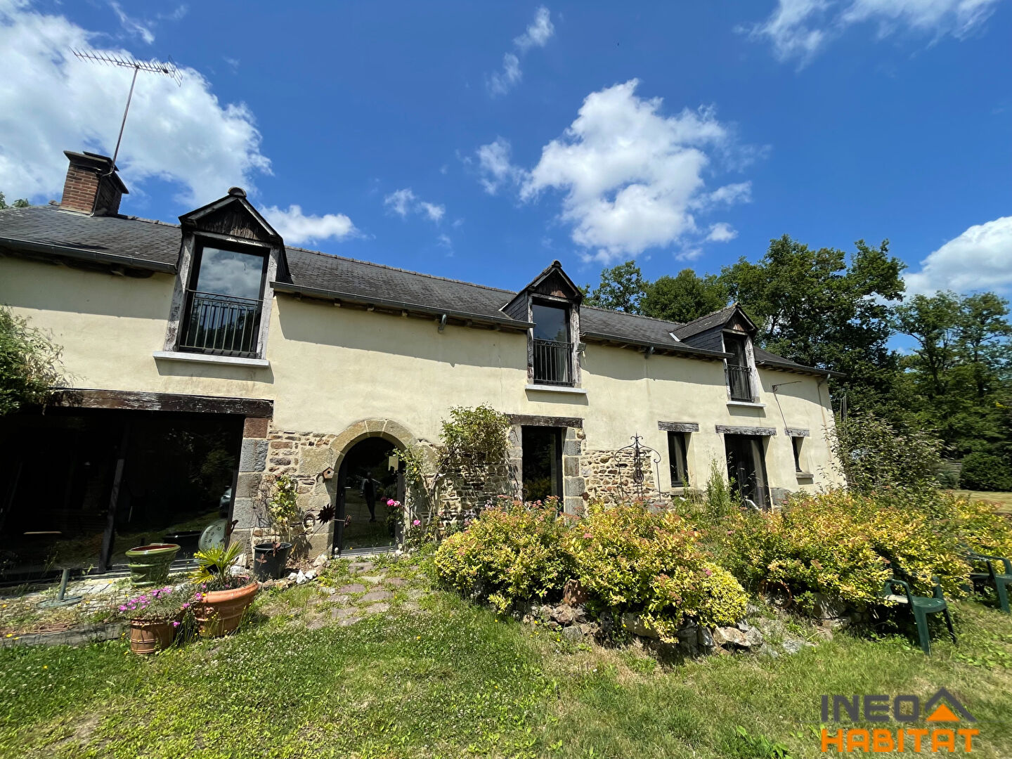 C'est une maison très agréable à vivre, exposée plein SUD. Calme. Sérénité. Volumes. Pas de vis à vis et proche de la gare de St Médard sur Ille. La longère est située en impasse.