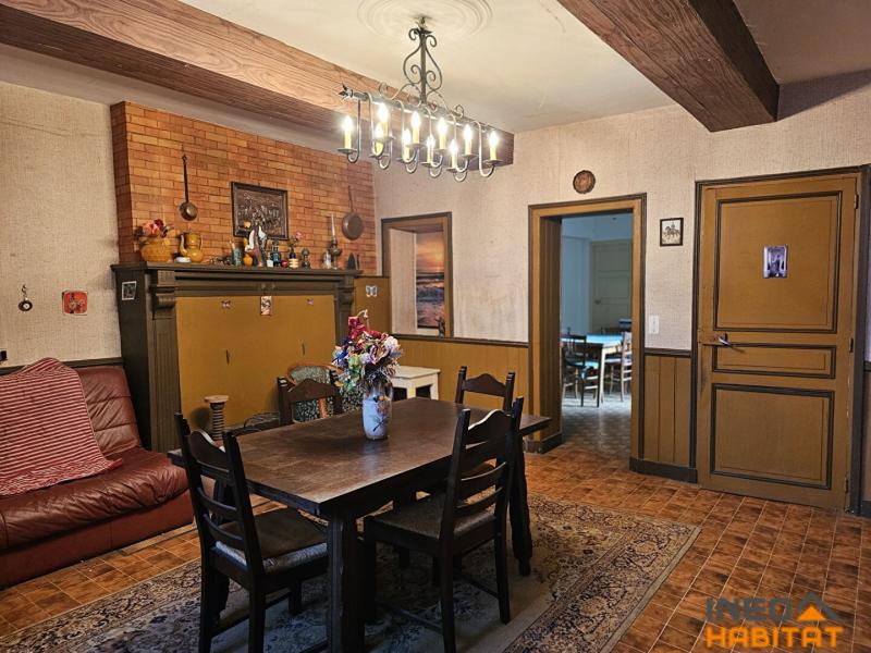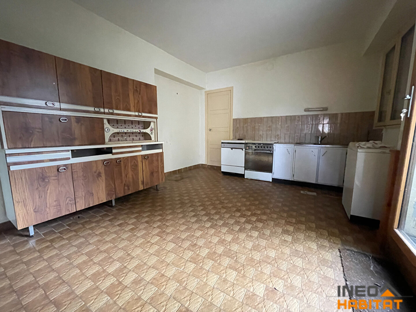 Ineo habitat vous propose une maison de ville en pierres couverte d'ardoises naturelles d'environ 90m² à rénover comprenant au rez-de-chaussée : Une entrée , pièce de vie, une cuisine, WC.