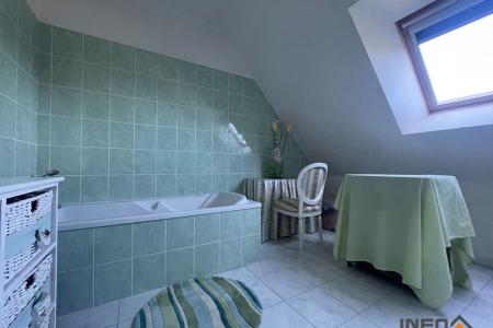 A l'étage : un dégagement dessert trois chambres, une salle de bains et des WC indépendants. Vous y trouverez également un grenier offrant un beau potentiel d'aménagement.
