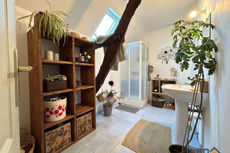 A l'étage, une grande mezzanine dessert trois belles chambres, une salle d'eau, et un WC séparé.