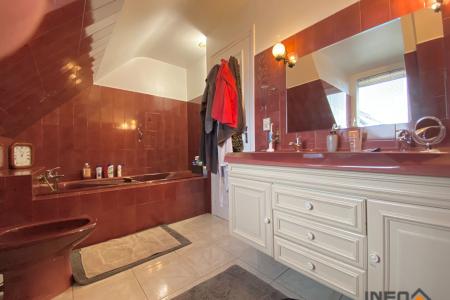 A l'étage, une mezzanine pouvant servir de bureau pour le télétravail ou de salle de jeux dessert trois chambres (dont une avec placard), une salle de bain et un WC indépendant.