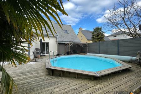 Une allée de stationnement goudronnée et un terrain de 570m² clos et arboré avec jardin et une terrasse. Une piscine chauffé semi enterrée. Environnement calme et sans vis à vis.