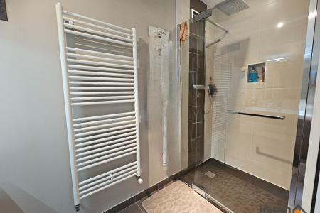 Un hall d'entrée avec placard donnant accès à un salon/séjour avec un poêle à bois, une cuisine aménagée (meubles haut et bas, évier, four, plaque, hotte, lave-vaisselle), une suite parentale comprenant une chambre de 11m² et une salle d'eau avec douche. une buanderie, un wc suspendu avec lave-mains.