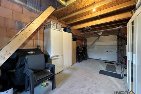 La maison dispose également d'un garage avec porte motorisée et d'un grenier aménageable d'environ 20 m², offrant un potentiel supplémentaire.
