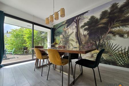 La terrasse exposée Sud et le jardin paysager prolongent agréablement les espaces de vie et offrent un cadre verdoyant propice à la détente.