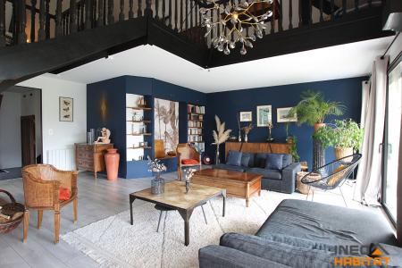 A l'étage, une mezzanine surplombant le séjour dessert quatre chambres avec rangements, une salle de bains, wc ainsi qu'une suite parentale composée d'une chambre et d'une salle d'eau privative avec wc.