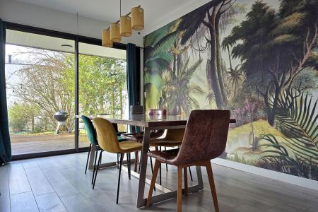 Située à Laillé, dans un environnement calme et recherché, cette spacieuse maison d'architecte construite en 1970 développe environ 307m² habitables sur un magnifique terrain arboré de plus de 1500 m².