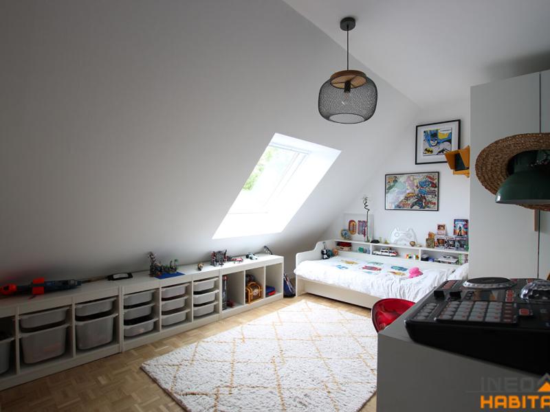 A l'étage, le palier distribue trois chambres lumineuses dont une pouvant acceuillir un espace dressing . Vous trouverez également un bureau, une salle de bains ainsi qu'un WC séparé pour plus de commodité.