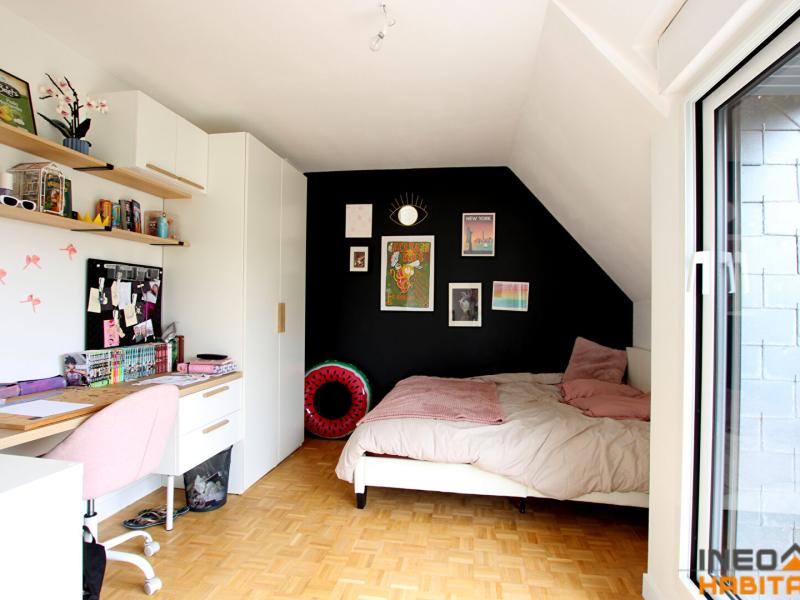A l'étage, le palier distribue trois chambres lumineuses dont une pouvant acceuillir un espace dressing . Vous trouverez également un bureau, une salle de bains ainsi qu'un WC séparé pour plus de commodité.