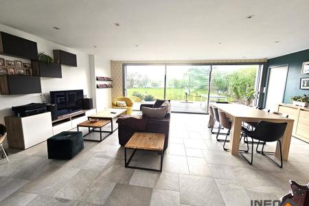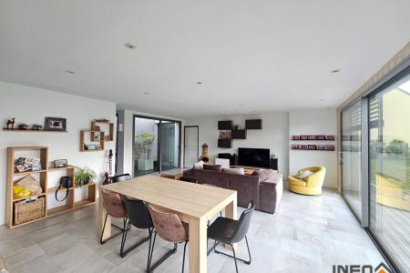 Située hors lotissement au calme, dans un esprit conviviale et fonctionnelle, cette maison contemporaine indépendante de 140 m², en plain pied, sur une parcelle de 1000 m² environ, offre des prestations modernes et de qualité.