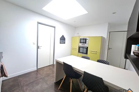 Dès l'entrée avec placard, découvrez un vaste salon séjour lumineux avec un patio, un bureau. La cuisine équipée et son arrière-cuisine offrent un bel espace fonctionnel. Un WC avec lave-mains complète cette partie.