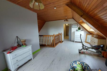 A l'étage : une mezzanine, trois chambres, un bureau, une salle de bain, un wc.