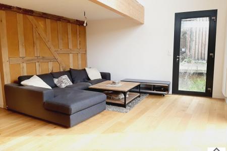Une extension réalisée en 2020 servant de salon avec une très belle hauteur sous plafond donnant vu sur le jardin, une terrasse reste à faire.