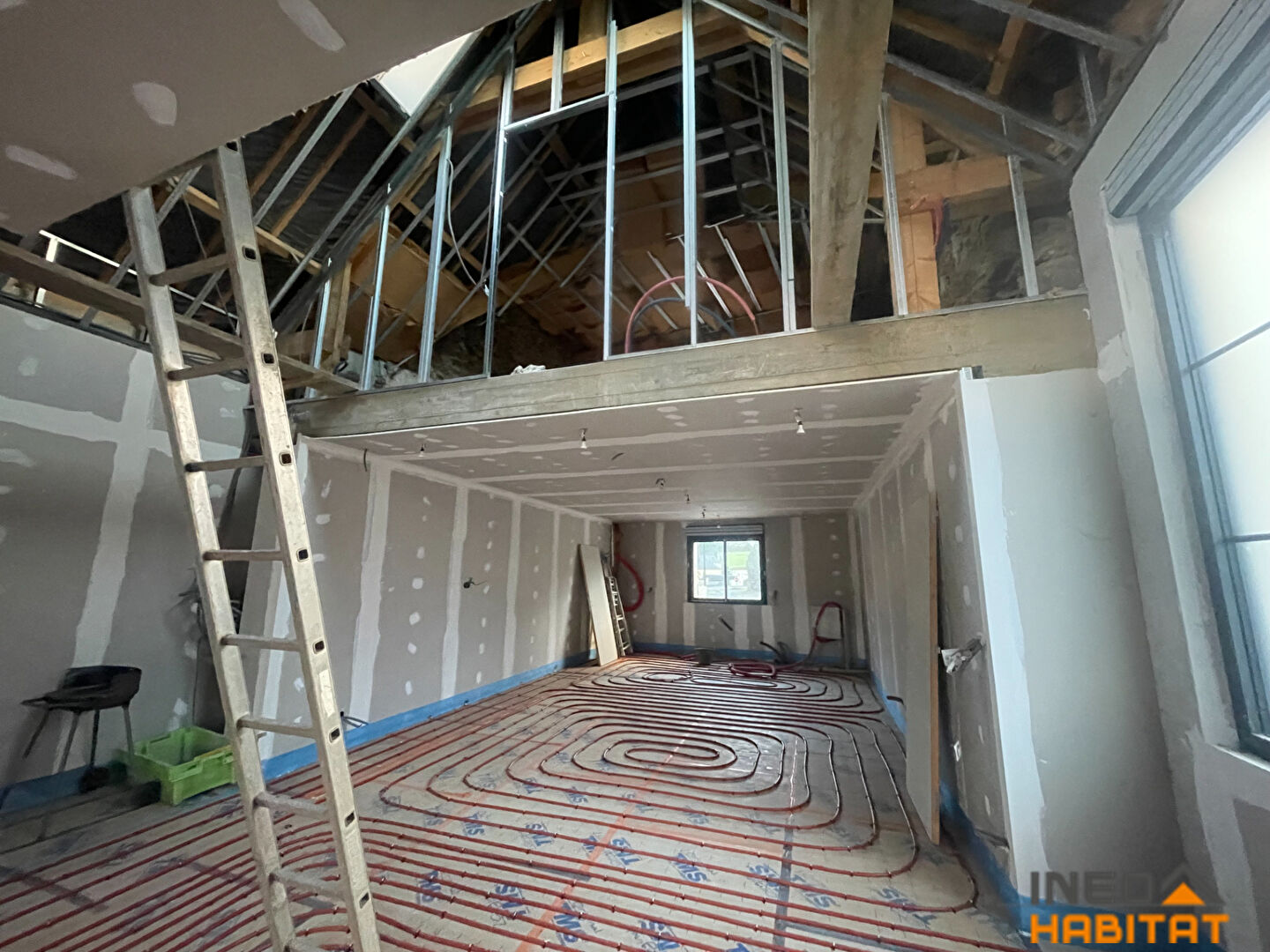 Travaux restants : Installation d'une pompe à chaleur, pose de placo et isolation à l'étage, aménagement des pièces de l'étage, la création et installation de la cuisine, salles d'eau et WC.