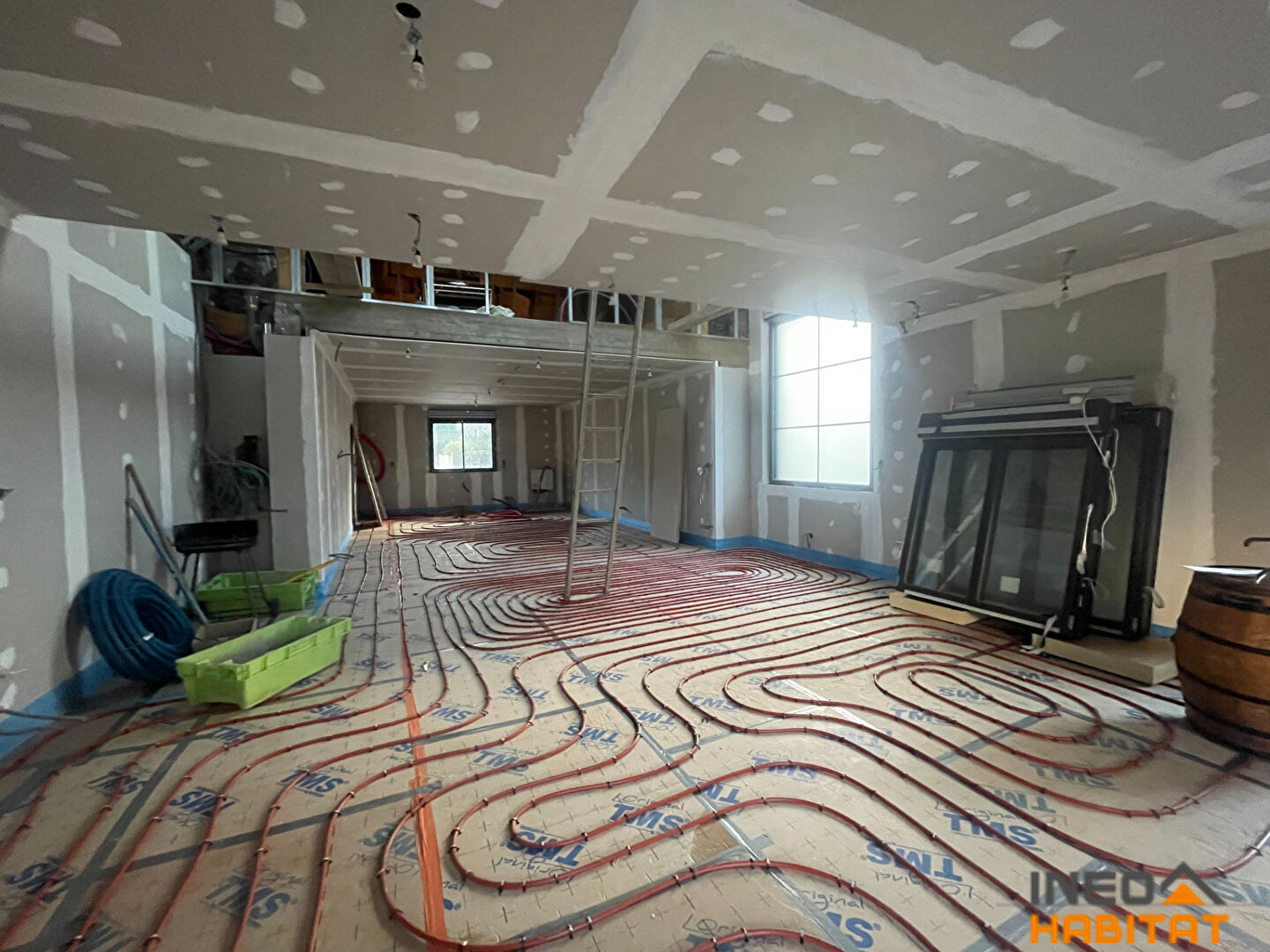 Travaux restants : Installation d'une pompe à chaleur, pose de placo et isolation à l'étage, aménagement des pièces de l'étage, la création et installation de la cuisine, salles d'eau et WC.