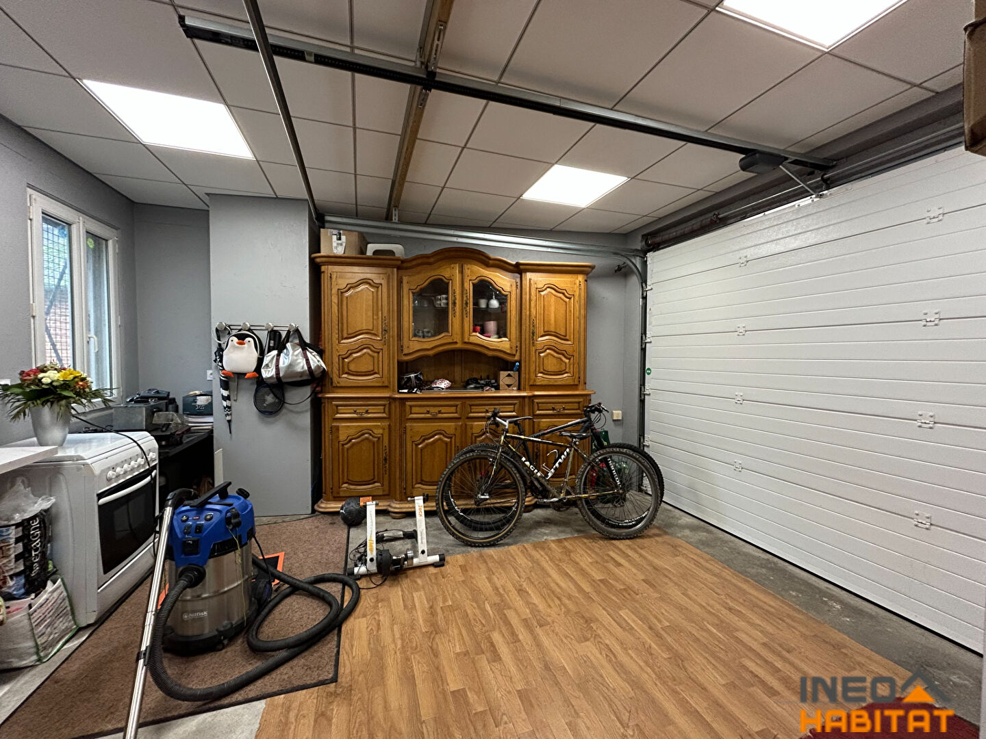 -Grande pièce de vie traversante avec cuisine ouverte, accès terrasse, buanderie, WC séparés, salle de bain (en cours d'aménagement) et garage accolé pouvant devenir une chambre.